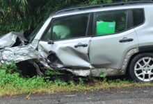 Carro fica esmagado ao tentar fazer ultrapassagem